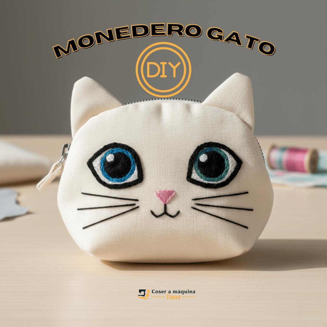 Molde para monedero de tela con forma de gato. Ideal principiantes.