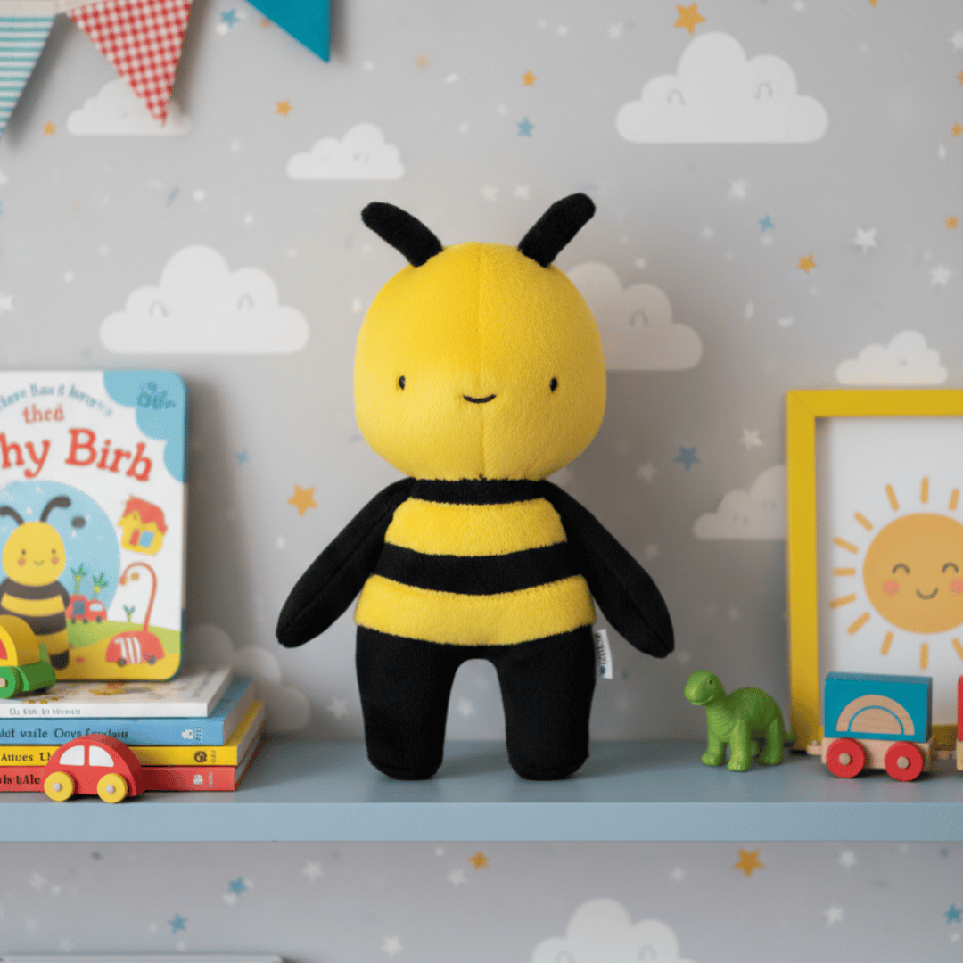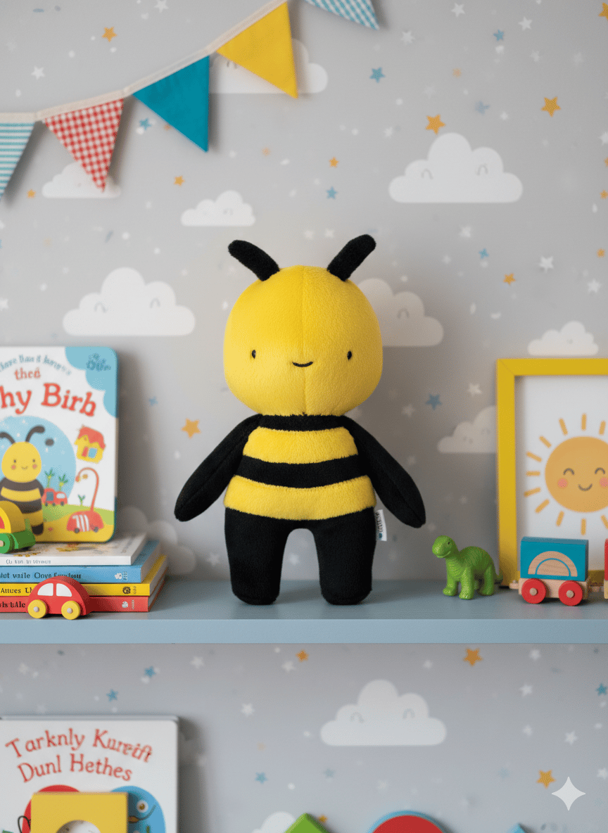 Cose una adorable abeja de peluche de 18 cm con este patrón en PDF descargable.